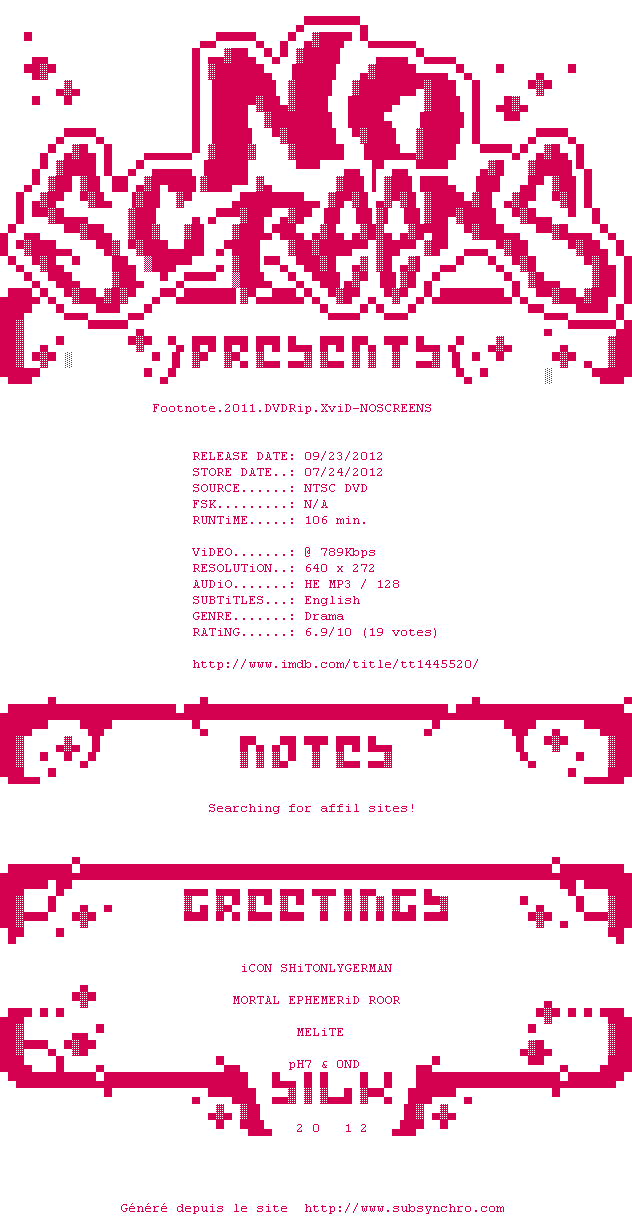Voir le nfo de la release Footnote.2011.DVDRip.XviD-NOSCREENS