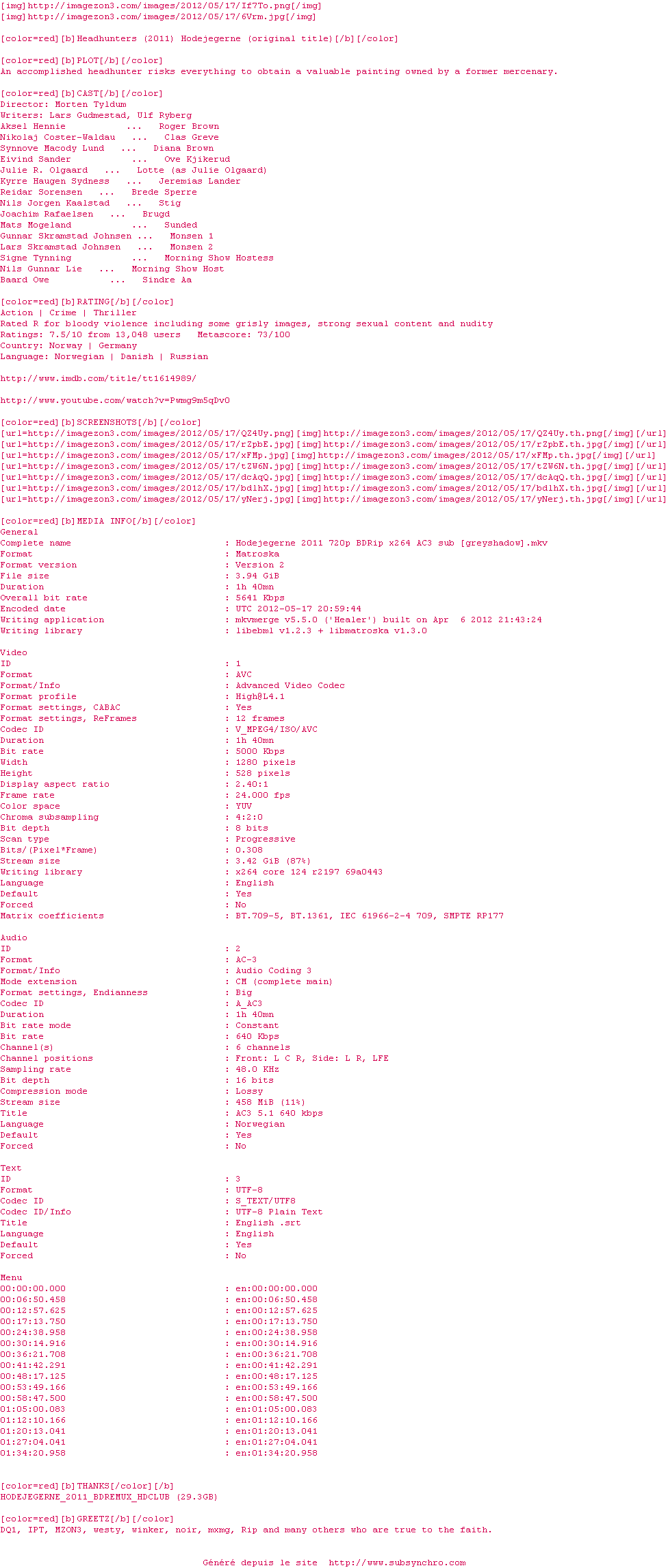 Très bon thriller, un peu long à démarrer, mais parfait dans sa résolution... Un (anti)héros sympathique (étymologiquement parlant...ce qui veut dire qu'on souffre avec lui. Et on souffre !) et une mise en scène soignée comme dit Guybrush, et surtout bien non-américaine, ce qui est toujours rafraichissant. Jaime Coster-Waldau est très à l'aise dans son rôle, sans être exceptionnel.