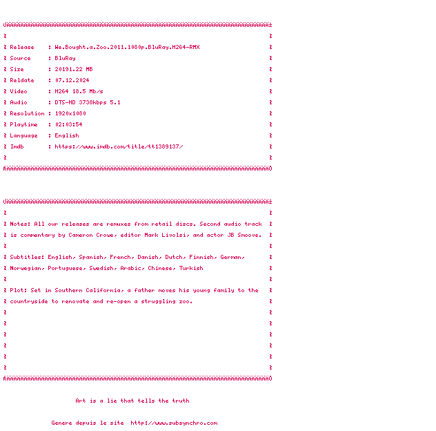 Le commentaire de Takuandaichi Commente par Takuandaichi (49), Le Lundi 28 Mars 2016 à 03h58 Je ne suis pas du tout pour les "mélos", notamment parce que beaucoup d'entre eux finissent par ressembler à de simples inventaires des émotions humaines (salut, Fossoyeur !), formule parfaite pour en faire du tire-larme facile parlant au plus grand nombre. Celui-ci n'en est pas un. C'est un "petit" film (avec un méchant casting, quand même) qui, malgré un sujet plutôt général, reste délicat dans son approche et ne cherche pas à se faire plus grand qu'il n'est. Bien joué, une photo travaillée et une bande-son envoutante qui ne passe pas inaperçue. A voir pour tout public, tout âge. 8 / 10 0 0