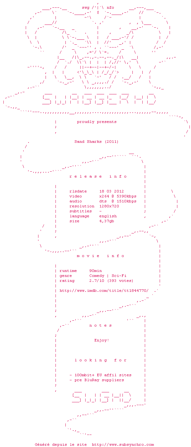 Voir le nfo de la release Sand.Sharks.2011.720p.BluRay.x264-SWAGGERHD