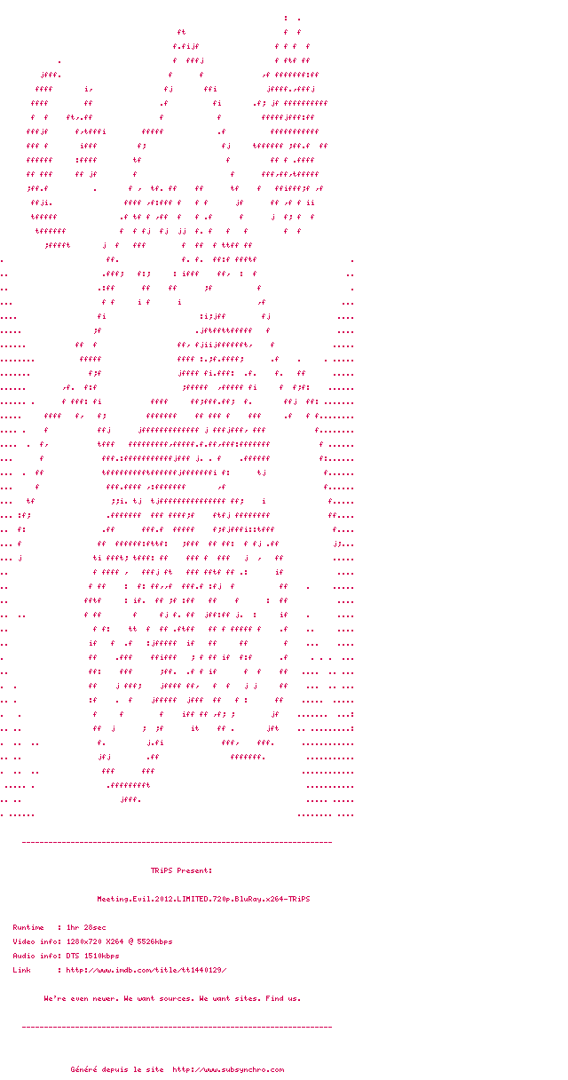 Voir le nfo de la release Meeting.Evil.2012.LIMITED.720p.BluRay.x264-TRiPS
