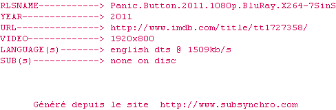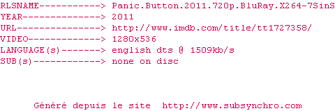 Voir le nfo de la release Panic.Button.2011.1080p.BluRay.X264-7SinS