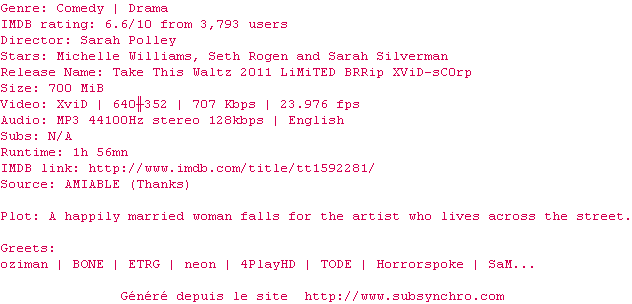 Il y a 1 commentaire pour le film #5441 !Le commentaire de Jean! C'est tout.