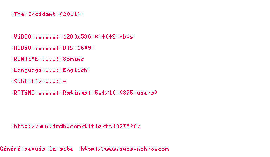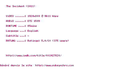 Voir le nfo de la release The.Incident.2011.1080p.BluRay.x264-MELiTE
