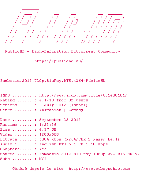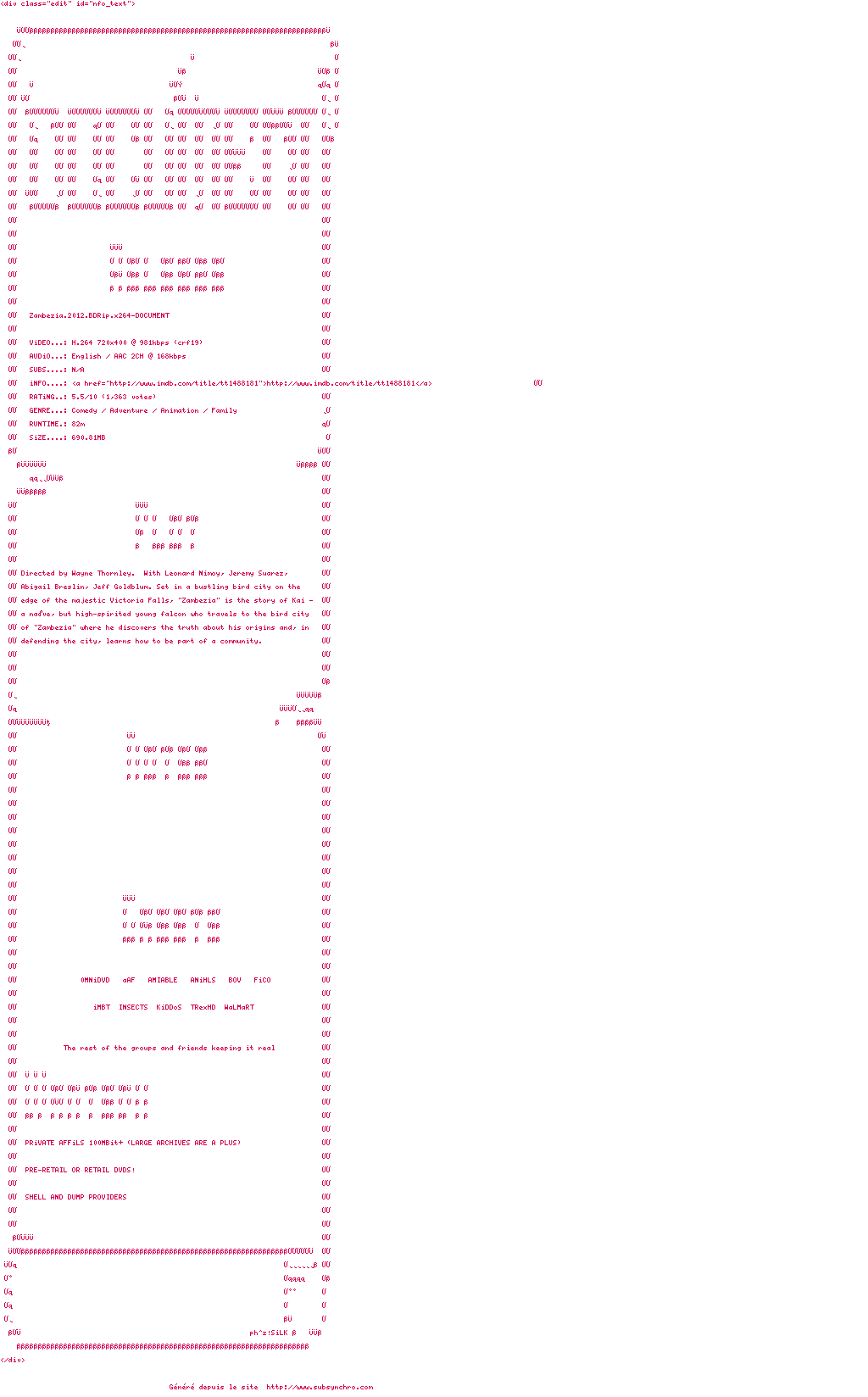 Le commentaire de Yaumegui Commente par Yaumegui (554), Le Dimanche 08 Decembre 2013 à 03h03 Déjà on évite les côtés nunuche, clicheton et mièvre du Roi lion, mais ce n'est pas encore ça. Le film est techniquement parfait, l'idée de départ est plutôt sympa, le traitement de l'Afrique sympa, le problème est le scénario qui s'avère assez basique et qui manque de pétillant. C'est dommage, les personnages secondaires devant amener de l'humour sont bien trouvés, mais ils ne sont pas assez développés, du coup l'histoire est vraiment trop premier degré. Mais ça vaut mieux que beaucoup d'animés putassiers et indigestes, les enfants de moins de 10 ans apprécieront les aventures de ces piafs colorés. 7.5 / 10 1 0