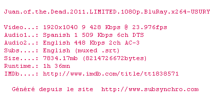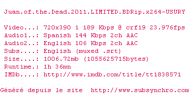 Le commentaire de Guybrush Commente par Guybrush (81), Le Mardi 05 Aout 2014 à 00h19 Un "Shaun of the Dead" sur l'île de Cuba, de l'auto-dérision, des effets spéciaux petit budget, de l'humour bien débile... Même s'il ne parvient pas à se mettre au niveau de son modèle, on passe quand même un bon moment ! 7 / 10 2 0