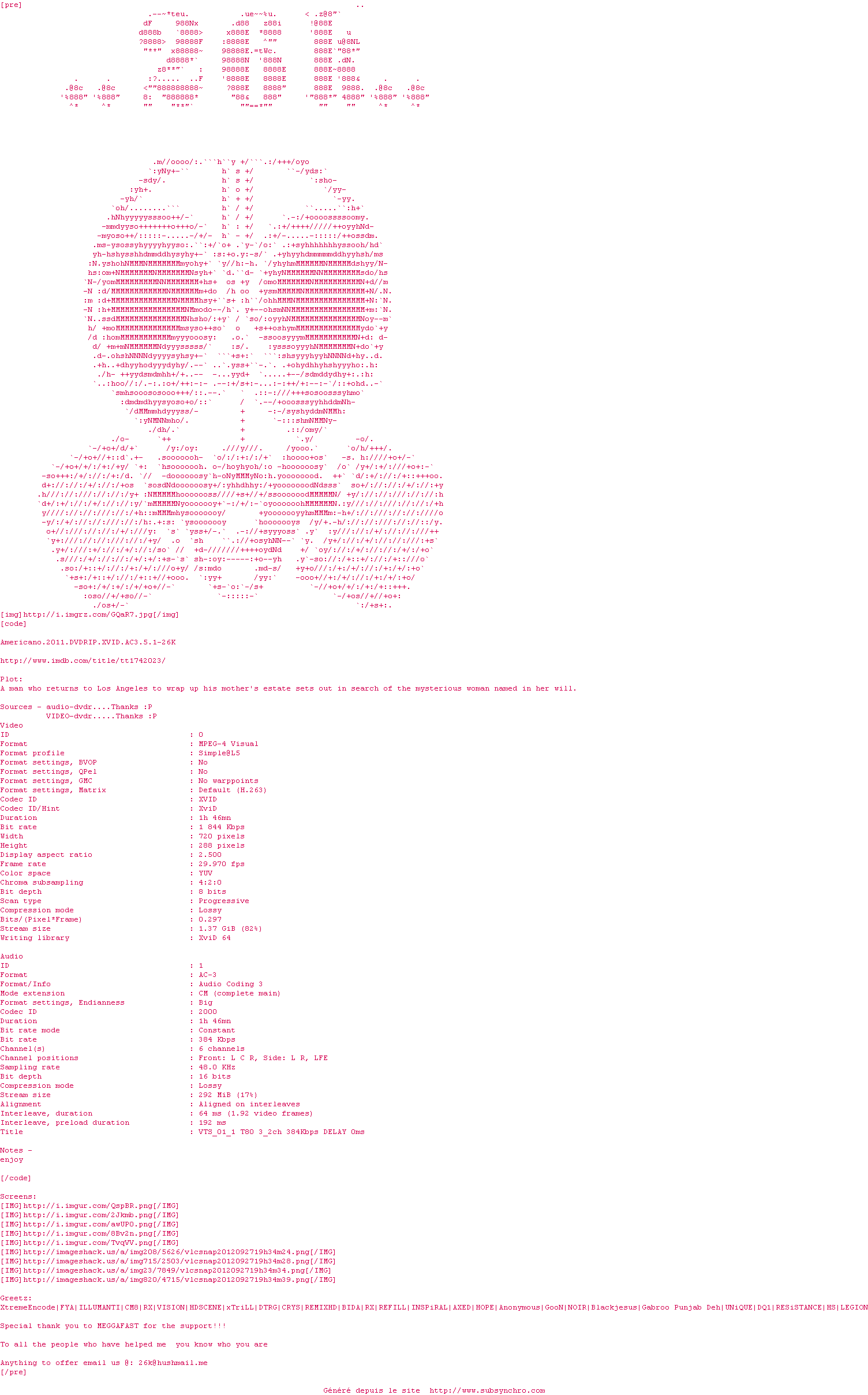 | Voir le nfo de la release Americano.2011.DVDRIP.XVID.AC3.5.1-26K | 26K | Americano.2011.DVDRIP.XVID.AC3.5.1-26K OpenSubtitles | 0 fichier | ||