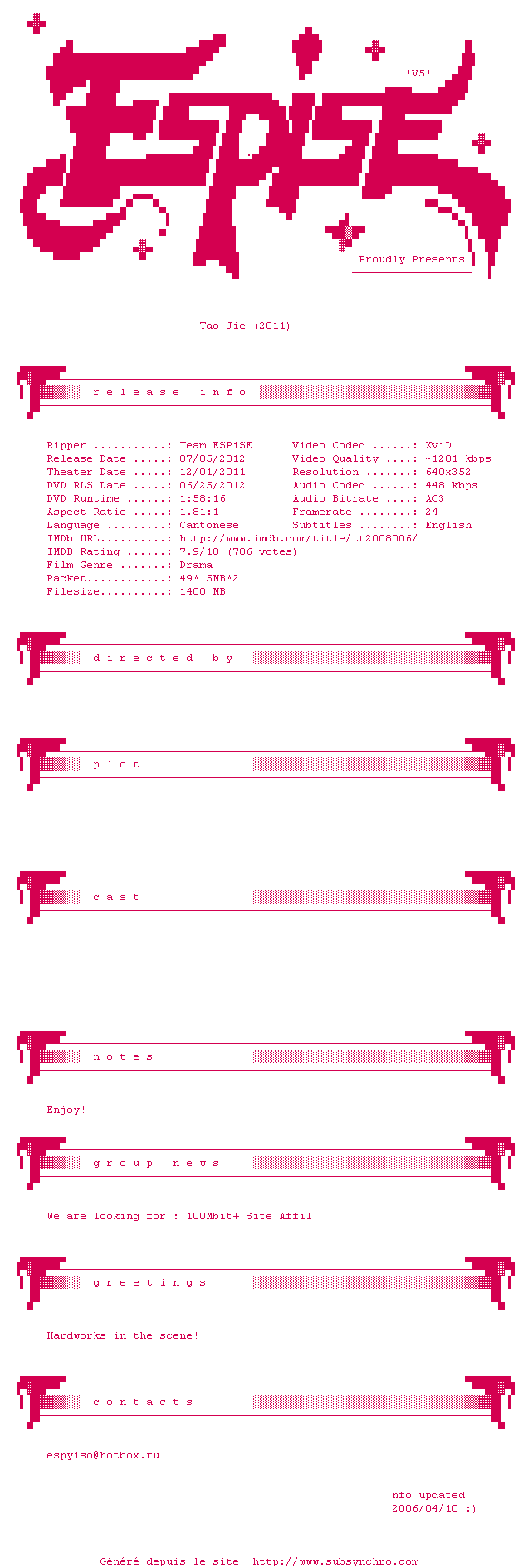 Telechargez le RSS « Fichier de la release A.Simple.Life.2011.BDRip.XviD-ESPiSE »