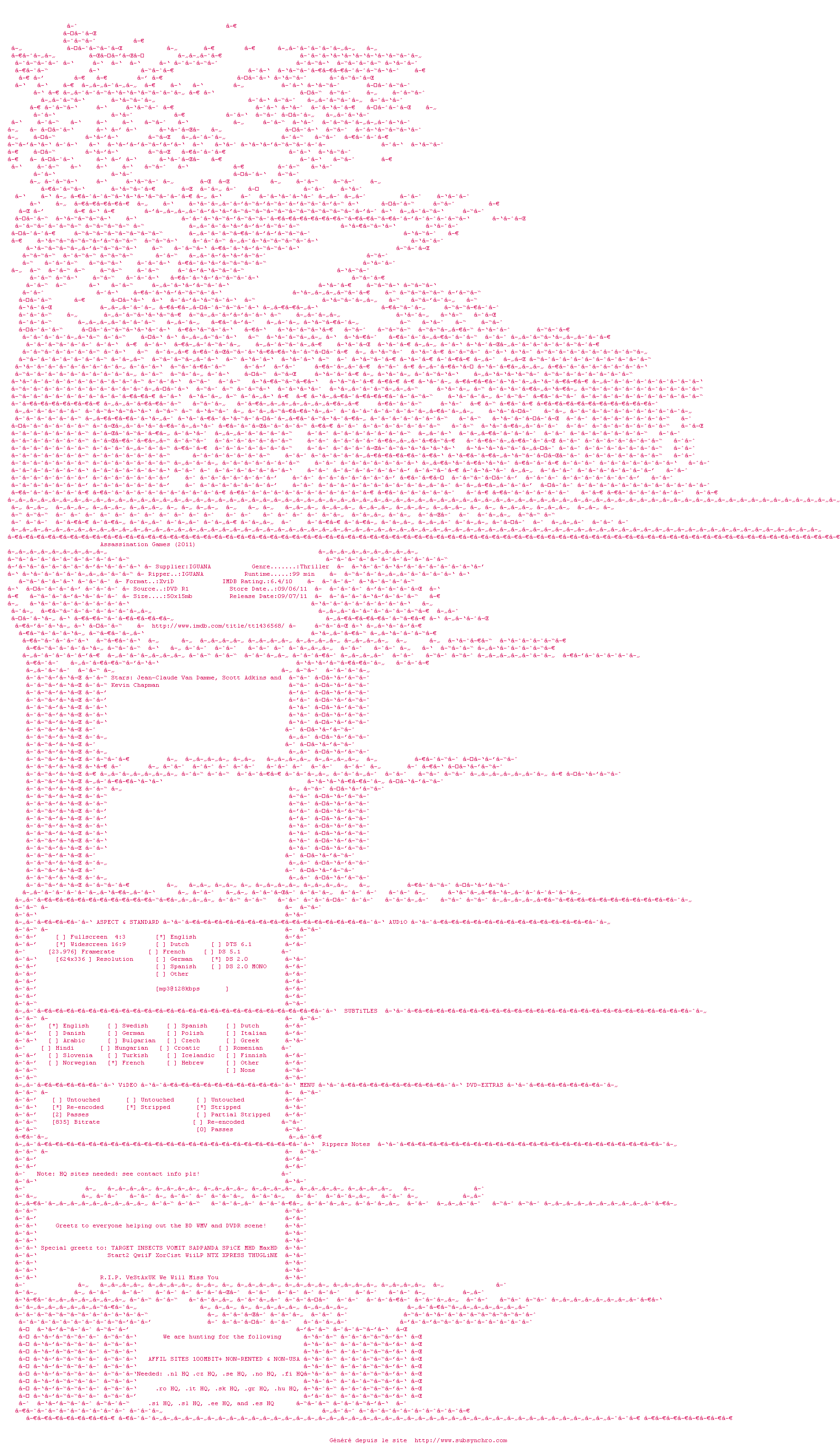 Telechargez le RSS « Fichier de la release Assassination.Games.2011.DVDRip.XviD-IGUANA »