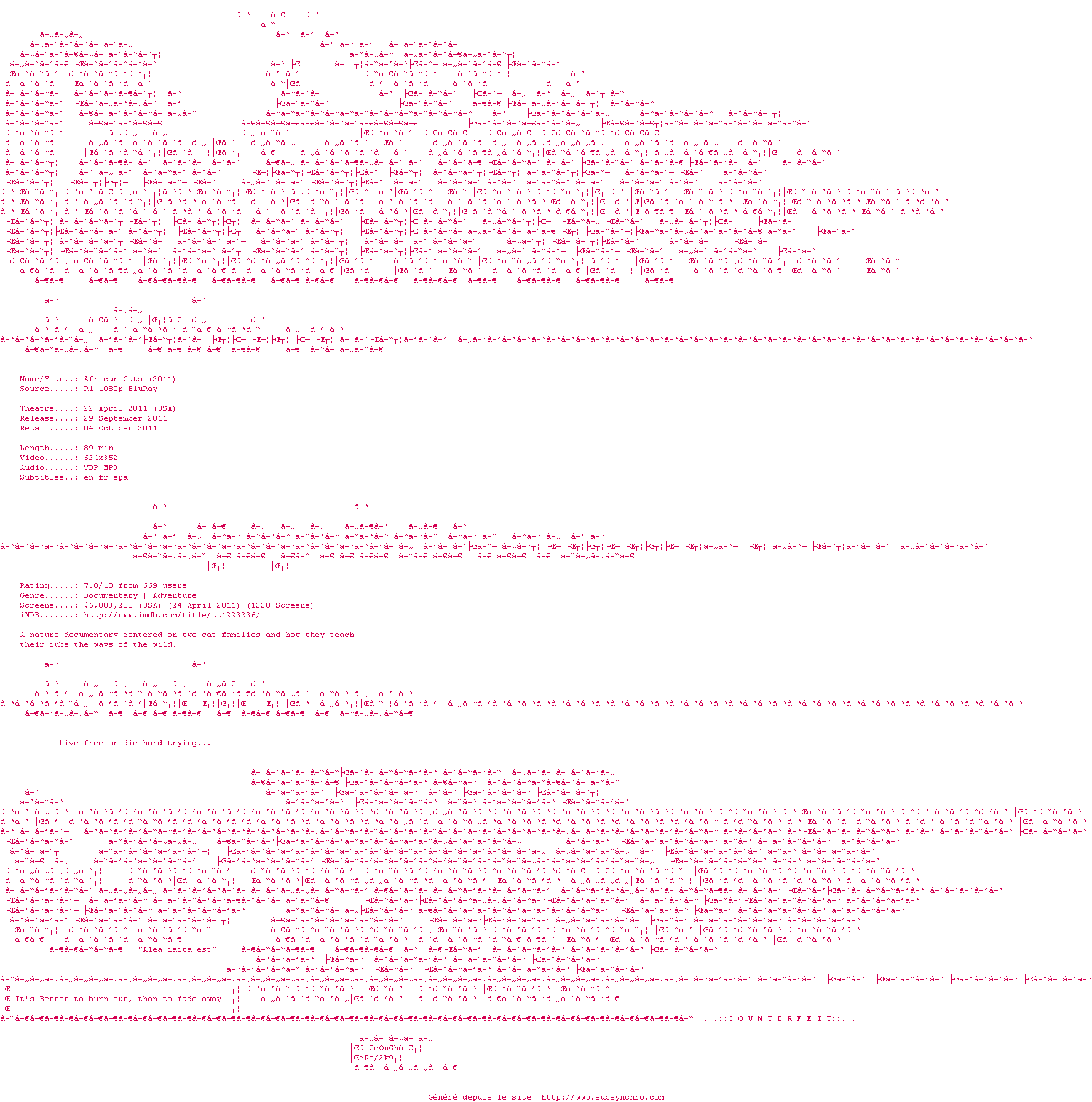 Telechargez le RSS « Fichier de la release African.Cats.2011.DOCU.BDRip.XviD-Counterfeit »