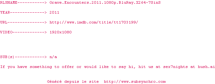 Telechargez le RSS « Fichier de la release Grave.Encounters.2011.1080p.BluRay.X264-7SinS »