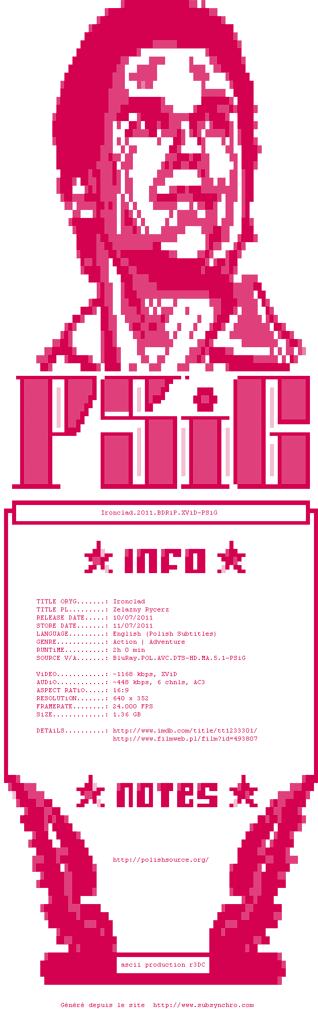 psig-ironclad.2011.bdrip.xvid.srt Ajouté par Lolo1734 Ajoute le 27-07-2011 16:56:59 Format : SRT Italique : Non Taille : 0.00Ko Telechargement : 1133 Fansub Team VoStFrCreW Ajouter cette release à ma collection en cas de telechargement des sous-titres 0 0 0 Telecharger le ZiP contenant NFO, Affiche, Sous-titre (*.srt) Commentez le fichier psig-ironclad.2011.bdrip.xvid.srt Commentez le fichier psig-ironclad.2011.bdrip.xvid.srt Commentez ce fichier Le fichier 1296-1311778619.srt n'existe pas ! Telechargez le RSS « Fichier de la release Ironclad.2011.BDRiP.XViD-PSiG » Retour au film « Le Sang des Templiers »