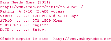 Telechargez le RSS « Fichier de la release Mars.Needs.Moms.720p.BluRay.x264-CROSSBOW »