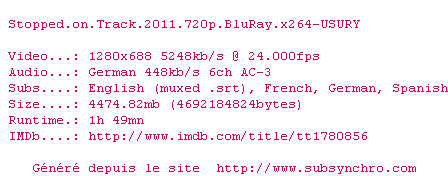 Telechargez le RSS « Fichier de la release Stopped.on.Track.2011.720p.BluRay.x264-USURY »