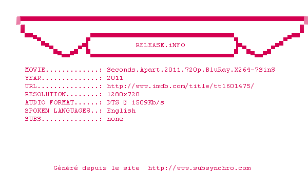 Telechargez le RSS « Fichier de la release Seconds.Apart.2011.720p.BluRay.X264-7SinS »