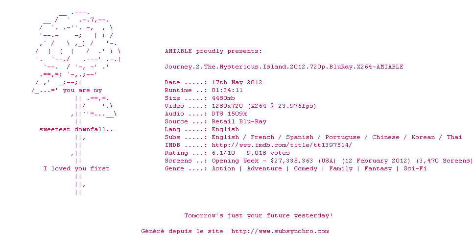 Compatible avec Journey.2.The.Mysterious.Island.2012.1080p.Bluray.DTS.x264-DON