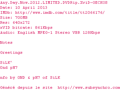 Date de sortie en France :