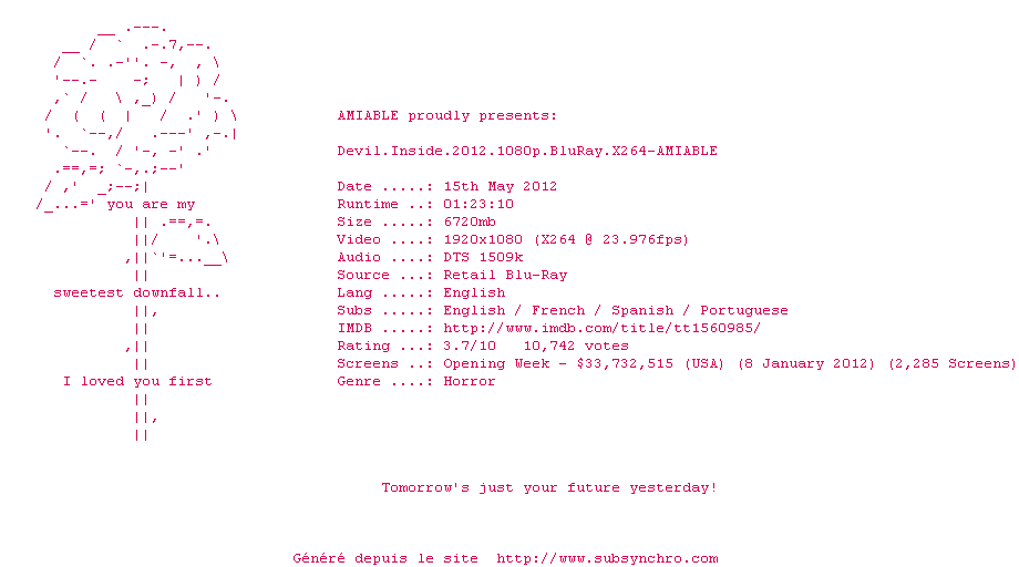 Il y a 1 commentaire pour le film #4919 !Le commentaire de SubSynchro
