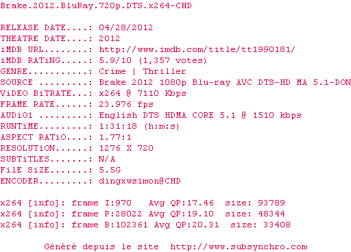 Le commentaire de Nuclear Commente par Nuclear (397), Le Dimanche 22 Septembre 2013 à 19h45 On souffre un peu tant l'intrigue semble téléphonée. Seulement, la vraie force de "Brake" réside dans son twist final, franchement renversant. 7 / 10 1 0