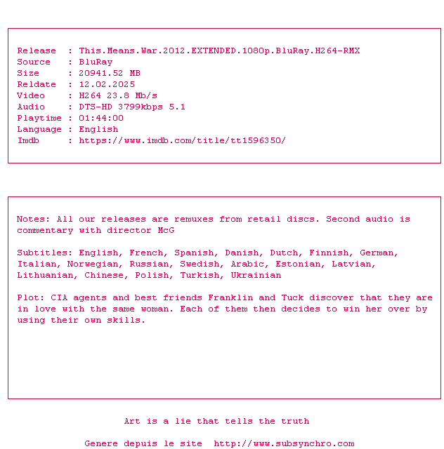 Il y a 1 commentaire pour le film #5017 !Le commentaire de SubSynchro