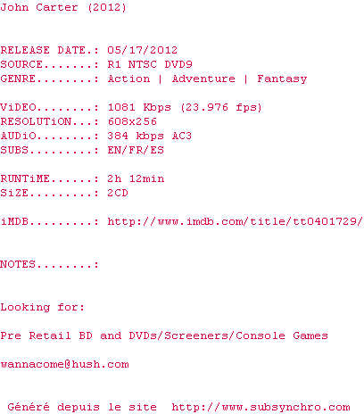De gros moyens et de l'ambition pour cette adaptation du roman de Burroughs qui rate completement son coup : Un scénario plus que moyen dont on entrevoit la fin assez vite, des personnages sans charisme, une musique abrutissante. Reste des effets spéciaux de haute volée et une certaine originalité dans les designs. Mais qu'est-ce qu'on s'ennuie !