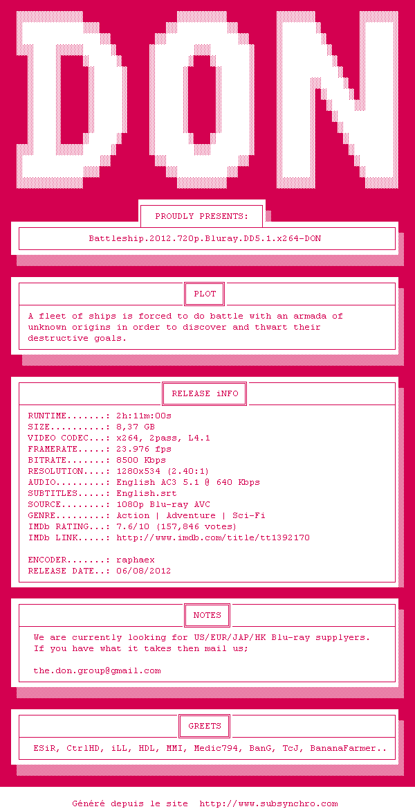 Curieusement, je m&39;attendais à une gigantesque bouse mais non, pas tant que ça. Certes, le côté Independance Day (je copie la référence des copains) est trop présent, et les quelques scènes grotesques déjà évoquées sont "too much", mais ça se regarde bien quand même. En grotesque, le coup de l&39;Ancre bat des records, mais ça fait quand même ton petit effet. Et les vétérans, ça donne un petit côté "mignon" au film... En fait, j&39;avoue adorer la mise en service du Cuirassé et son utilisation Enfin, visuellement, c&39;est une bonne claque et ça pète sacrément bien au niveau du son (ma femme : arrête, les murs vibrent)!