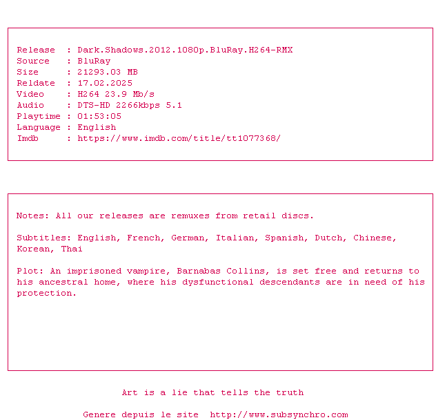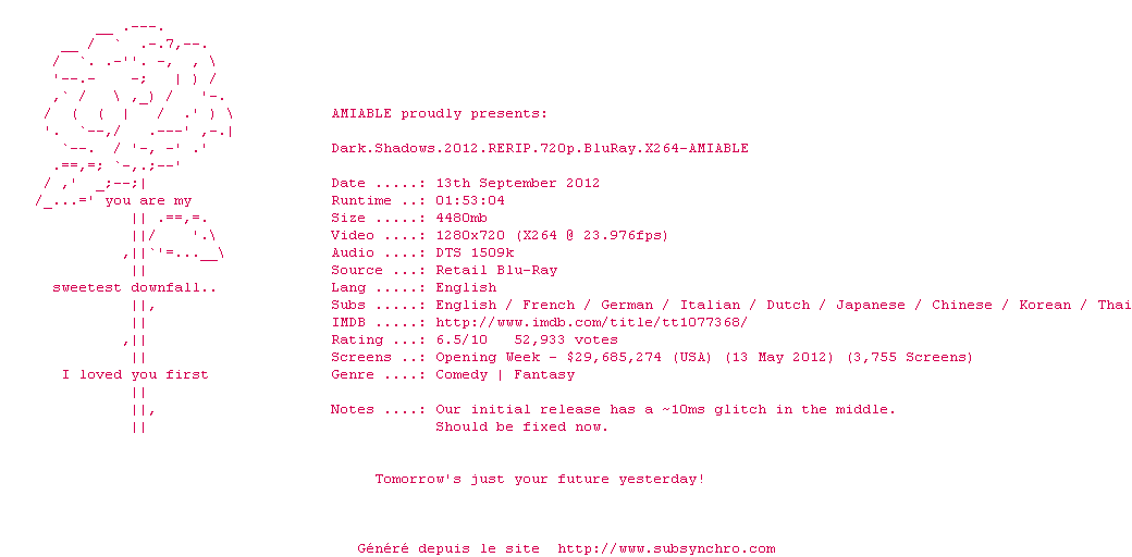 Juste un "Bien". Je regarde tout ce que fait Tim Burton, et Johnny Depp. Je n'ai pas été déçu pour l'atmosphère et l'ambiance, l'esthétique de Burton me plaît toujours autant. Par contre j'ai trouvé le scénario vraiment faible, les personnages un peu trop cliché et les thèmes trop peu fouillés. Le film reste en surface de ce qu'il aurait pu être. Cela me surprend pour un Burton.