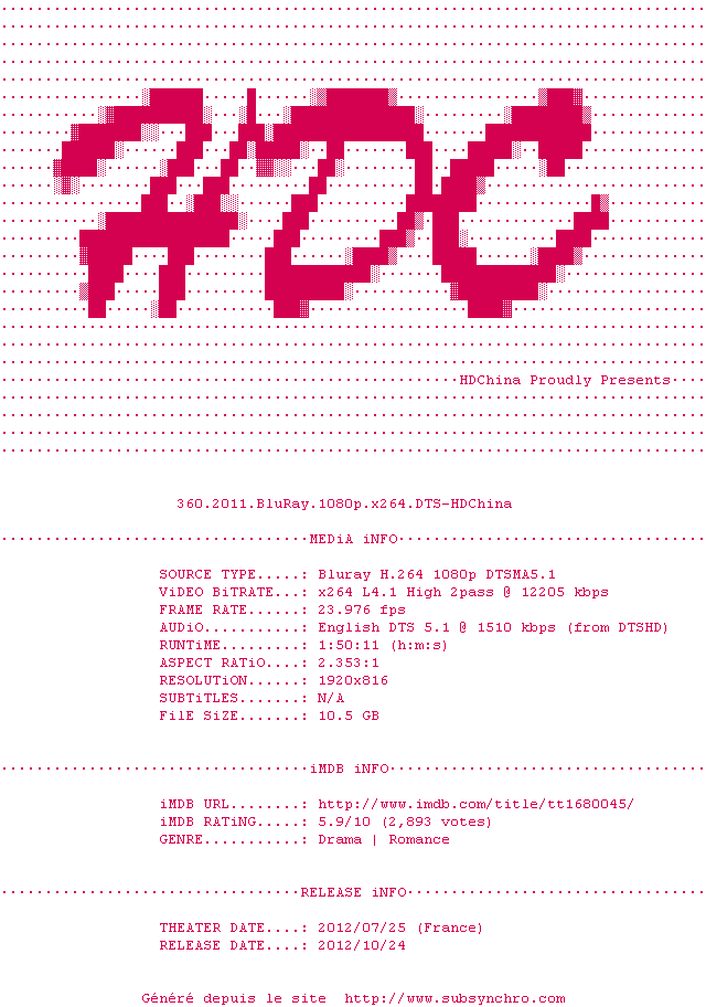 Le commentaire de Guybrush Commente par Guybrush (81), Le Dimanche 09 Fevrier 2014 à 23h51 Un puzzle romantique rythmé par une réalisation soignée, de très bons acteurs et une musique au top ! 7 / 10 1 0