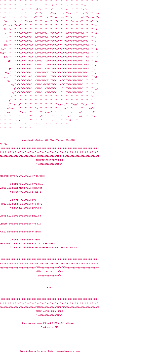Le commentaire de cbaka Commente par cbaka (5), Le Mardi 08 Octobre 2013 à 18h11 Si vous imaginez l'imparable will ferrel dans une telenovella Soap Mexicain..il faut voir Casa de mi padre...comme souvent c'est très spécial, mais tellement hilarant. a voir absolument en V.O 1 0