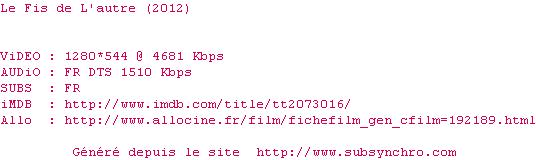 Voir le nfo de la release Le.Fils.De.L.Autre.2012.FRENCH.1080p.BluRay.x264-MAGiCAL