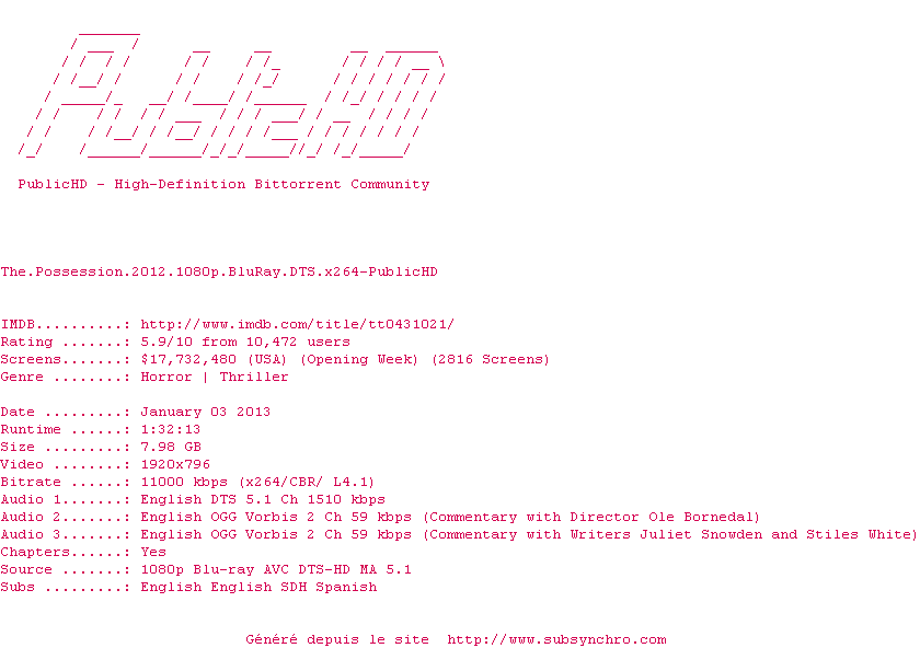 Il y a 1 commentaire pour le film #5796 !Le commentaire de SubSynchro