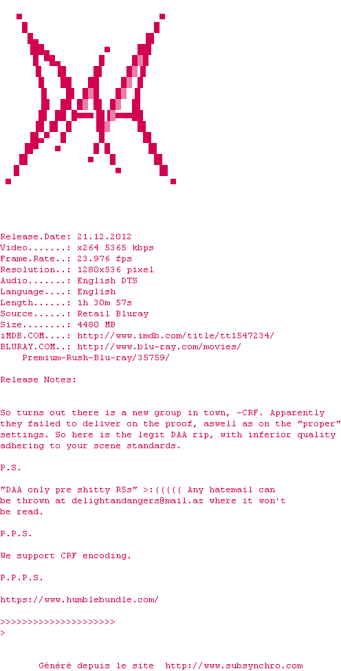Maintenant, quand je vois des gens qui ont un vélo à pignon fixe, donc sans freins (c'est assez extrême, quand même, faut être bien allumé) je leur dis: "ah! comme dans le film, premium rush! vous êtes des dingues!" Ça les fait toujours rigoler et ils l'ont tous vu. Mention spéciale à Michael Shannon, le flic pourri, car dans ce film il prouve qu'il peut tout jouer, et pas seulement ses rôles torturés et introvertis habituels. Un bon divertissement.