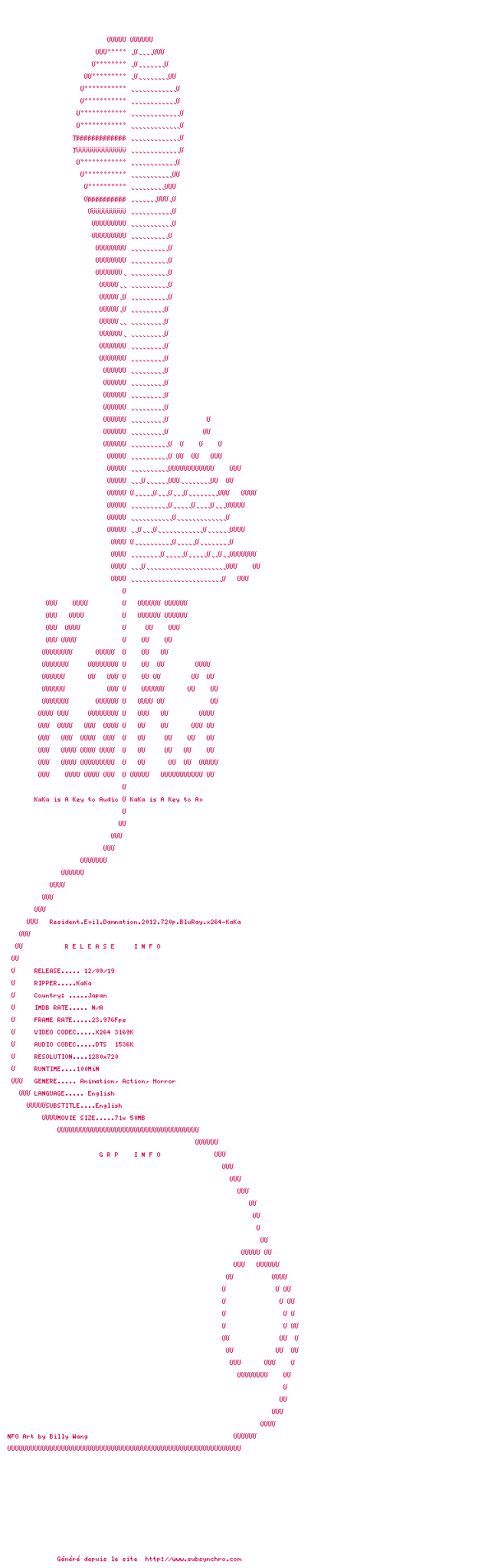 Voir le nfo de la release Resident.Evil.Damnation.2012.720p.BluRay.x264-KaKa
