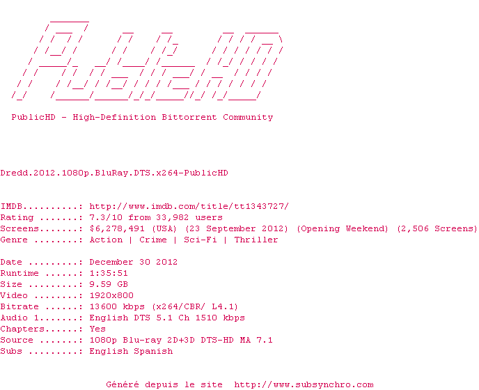 Pas le film de la decennie mais tout est la, a voir en 3D car très réussi a ce niveau la, dommage que ça ne se passe que dans un seul lieu et qu'on ne voit que très peu la ville, en meme temps l'original ne se passait pas non plus en ville. le Dredd est plus violent que jamais et sans pitié, ça fait plaisir. Qui a reconnu Circé de Game of Thrones ?