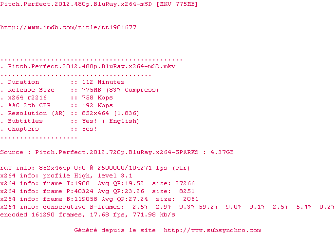 Il y a 2 commentaires pour le film #6167 !Le commentaire de SubSynchro