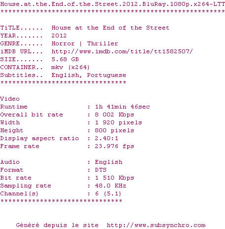 Le commentaire de Nuclear Commente par Nuclear (397), Le Dimanche 06 Janvier 2013 à 15h54 Si l'intrigue maintes fois revue ne garantit absolument aucun frisson, le public le moins difficile se rabattra sur une Jennifer Lawrence "captivante"... 5 / 10 1 0
