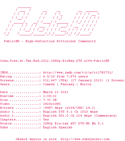 Le commentaire de Guybrush Commente par Guybrush (81), Le Lundi 18 Novembre 2013 à 23h49 Un film totalement déjanté, oscillant entre la série B et la série Z. Attention cependant, ce n&39;est pas à la portée de l&39;humour de tout le monde A consommer avec modération ! 8 / 10 1 0