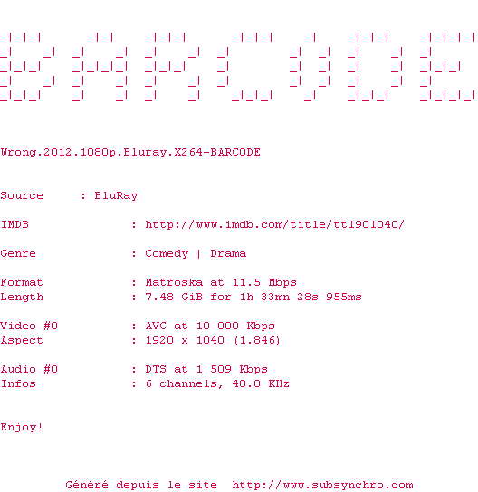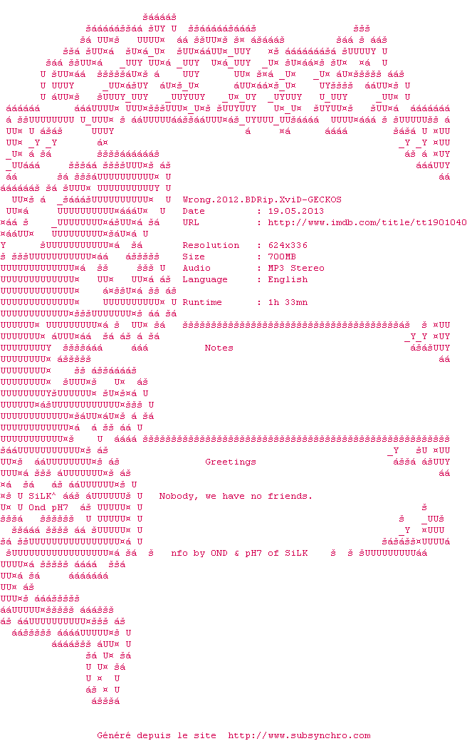 Le commentaire de Nuclear Commente par Nuclear (398), Le Samedi 26 Janvier 2013 à 22h47 Wrong pousse l'absurdité si loin qu'on finit même par s'interroger sur l'intérêt d'un tel projet. 5 / 10 1 0