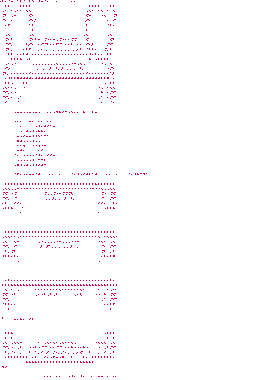 Voir le nfo de la release Celeste.and.Jesse.Forever.2012.720p.BluRay.x264-SPARKS