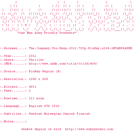 Le commentaire de CyberZip Commente par CyberZip (45), Le Dimanche 27 Octobre 2013 à 13h49 Effectivement l'histoire est longue mais elle devient surtout compliquée à suivre au fil du dénouement. Le jeu d'acteur de Redford est plutôt plat. On a plus l'impression de regarder un watergate au rabais, l'ennui en +. 4 / 10 1 0