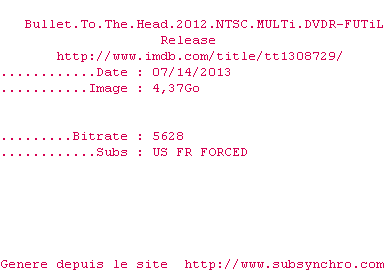 Voir le nfo de la release Bullet.To.The.Head.2012.NTSC.MULTi.DVDR-FUTiL