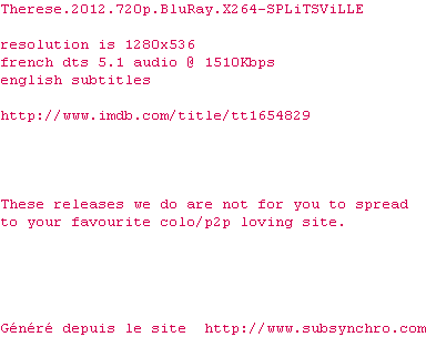 Voir le nfo de la release Therese.2012.720p.BluRay.X264-SPLiTSViLLE