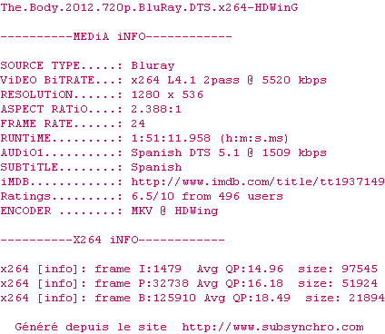 Voir le nfo de la release The.Body.2012.720p.BluRay.DTS.x264-HDWinG