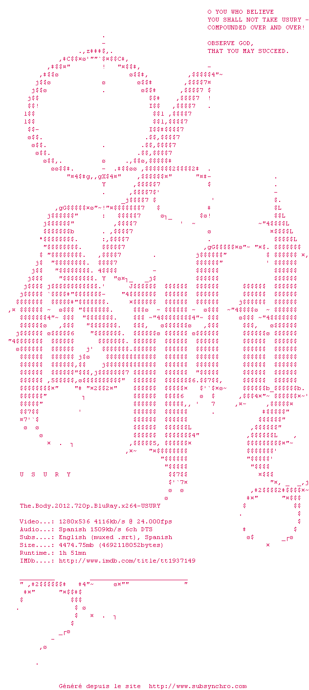 Voir le nfo de la release The.Body.2012.1080p.BluRay.x264-USURY