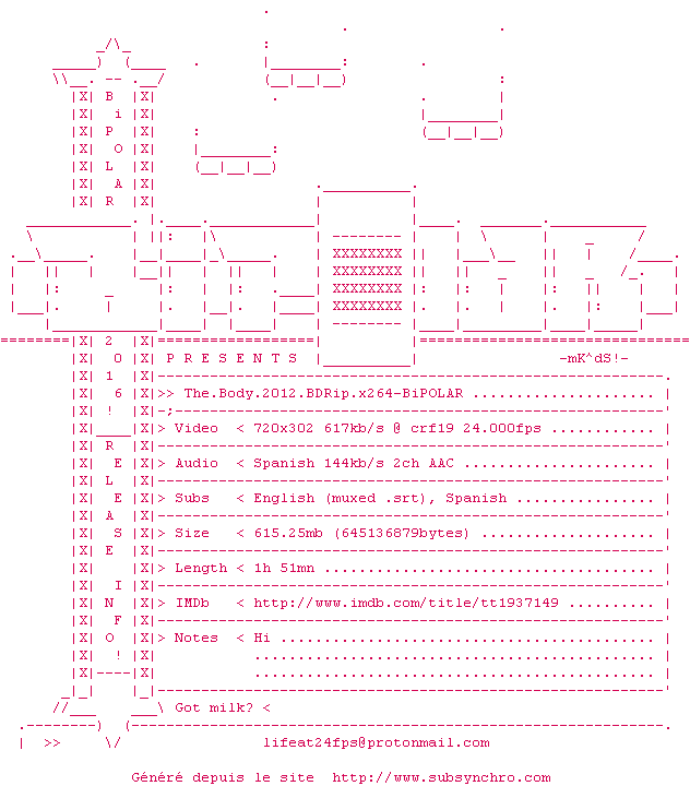 Voir le nfo de la release The.Body.2012.BDRip.x264-BiPOLAR