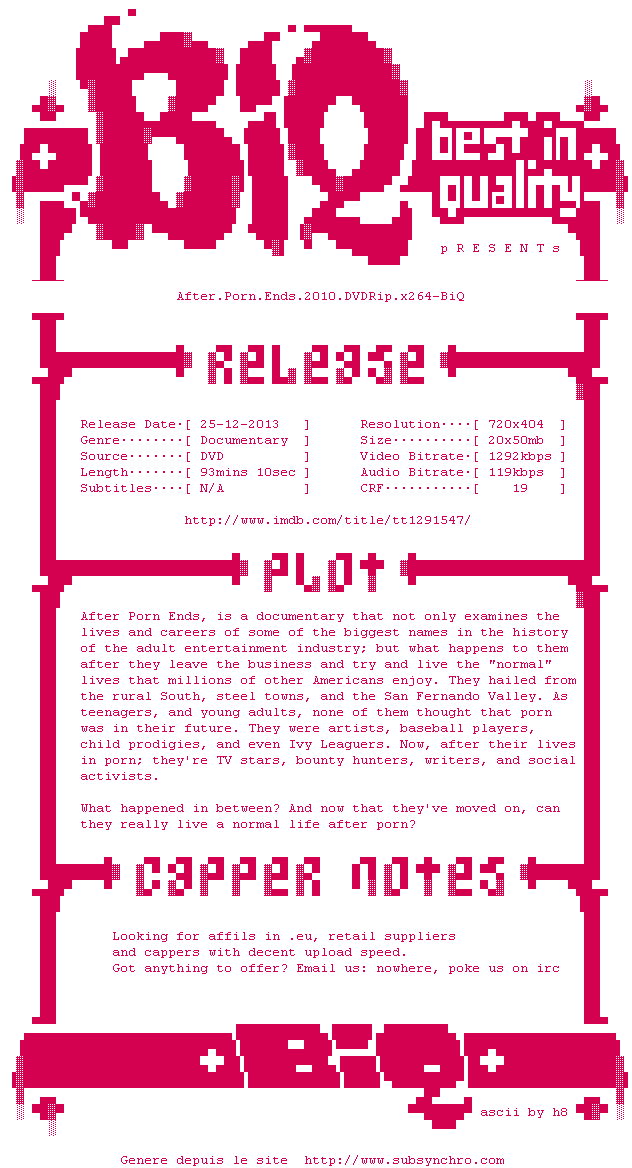 Telechargez le RSS « Fichier de la release After.Porn.Ends.2010.DVDRip.x264-BiQ »