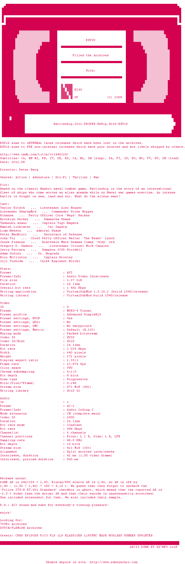 NFO de Battleship.2012.PROPER.BDRip.XviD-EXViD