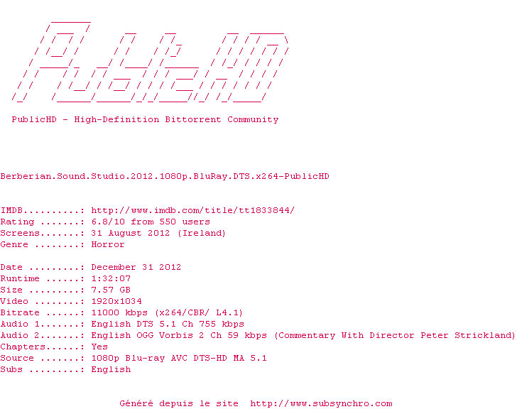 Telechargez le RSS « Fichier de la release Berberian.Sound.Studio.2012.1080p.BluRay.DTS.x264-PublicHD »