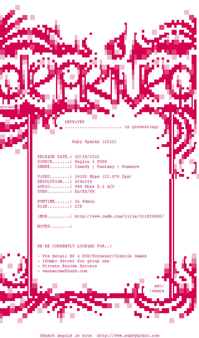 Telechargez le RSS « Fichier de la release Ruby.Sparks.LIMITED.DVDRip.XviD-DEPRiVED »