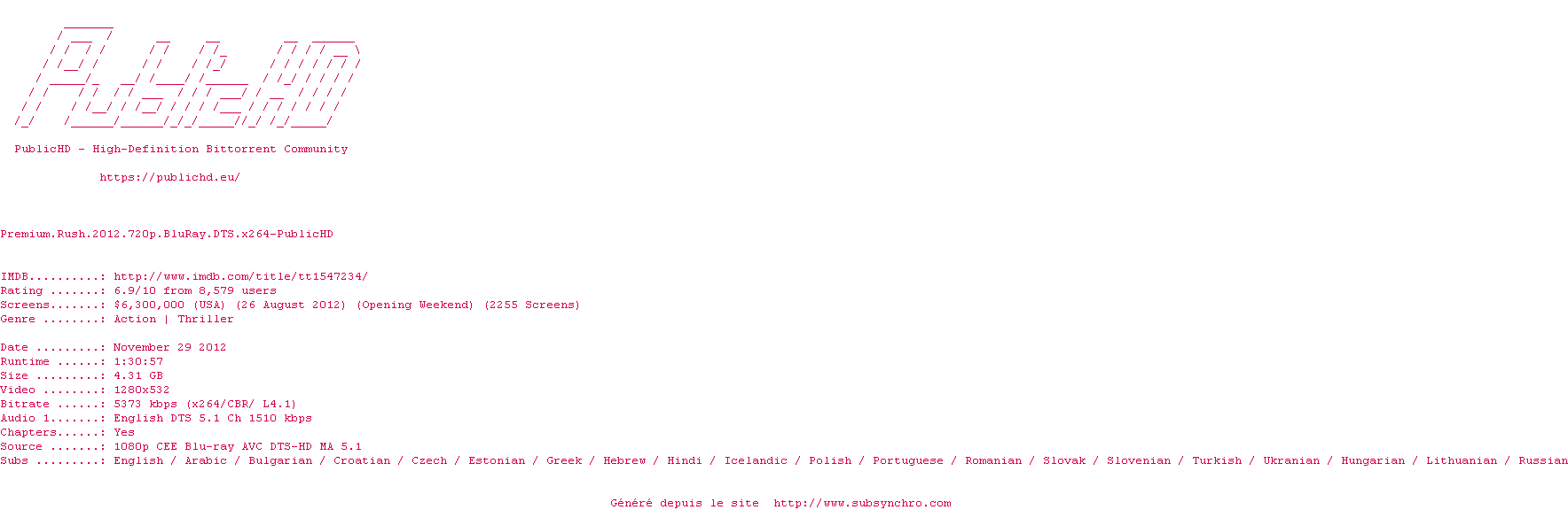 Telechargez le RSS « Fichier de la release Premium.Rush.2012.720p.BluRay.DTS.x264-PublicHD »